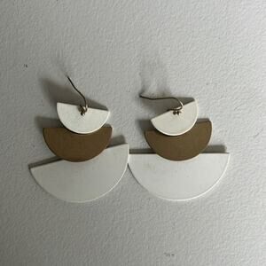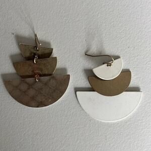 Gold and White Multi Size Half Moon Layered Earrings for Pierced Ears -OS