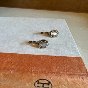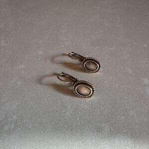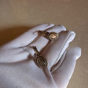 Chic earrings with a gold oval frame. Features a white center for a refined look. Gold plated earring, hypoallergenic & lightweight, "Only 1 available!”