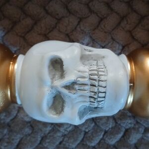 Add a touch of gothic elegance to your home with these gold and white skull candle holders. Perfect for creating a unique ambiance. New no tags.