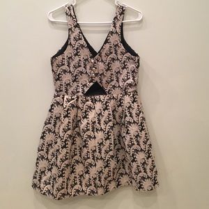 This dress is perfect for New Year's Eve. It has a glittery gold thread that cause the dress to sparkle when worn. The baby doll shape is very flirtatious and cute!