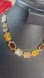Elegant necklace with gold and gemstone accents. Features clear, amber, and dark red stones. See matching earrings in my closet