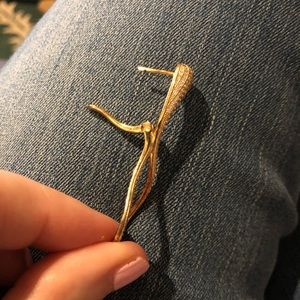 These are stunning! Genuine gold twist snake earrings with shimmering Swarovski Crystal throughout. 2” long x .60” at widest point. These snap shut, so there’s no back to lose. One of the earrings doesn’t snap into its groove anymore, but does stay secure regardless. Could use a professional cleaning in my opinion. No missing stones. Gorgeous for a formal night out. Stamped 6825.