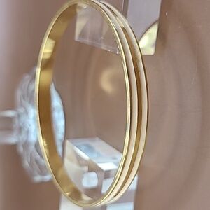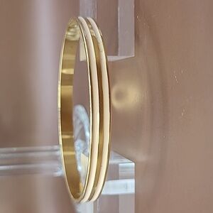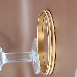 Gold color bangle bracelet. Pre-owned condition. No maker's mark. Some wear. Note pictures.