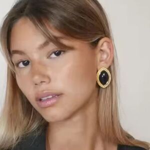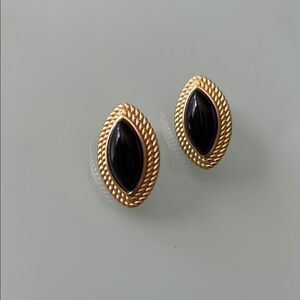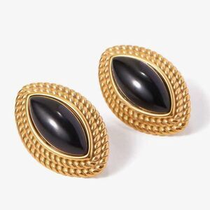Elegant gold and black oval earrings perfect for any occasion. These stunning pieces add a touch of sophistication to your look. 18k gold plated hardware