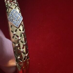 Gold bangle Bracelets gorgeous detailed work solid yellow gold with zirconium