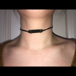 Gold bar choker on black suede 💡