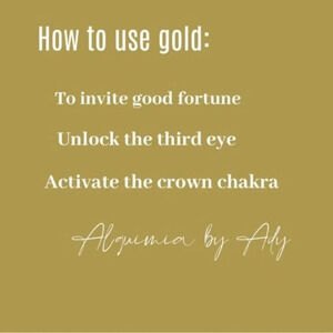 Gold brings connection to the universe and its knowledge, natural energies, and wisdom. It symbolizes purity in a spiritual sense and the development of total understanding. It unlocks and activates the third eye and crown chakras.