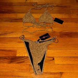 Gold two piece bikini with ring detailing BRAND NEW WITH TAGS NEVER WORN!!