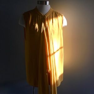Gold blouse button down with flowy material covering buttons. Perfect for spring! (Also available in green and yellow!)