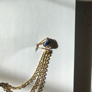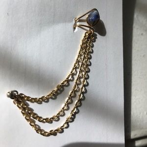 Handmade gold chain earring and ear cuff with blue and white stone on cuff part.