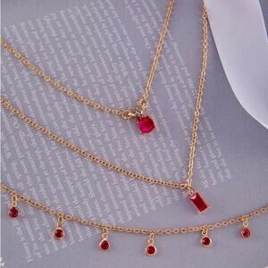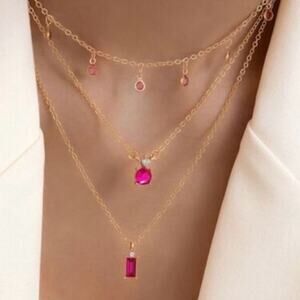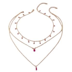 Layering necklace with pink gemstones
