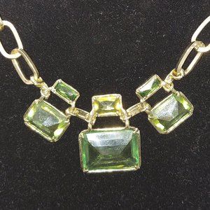Gold chain link necklace with rectangular green gemstones ** VALENTINES MONTH $20 OFFER JEWELRY DROP **