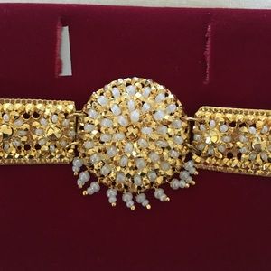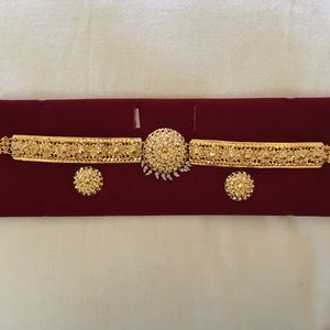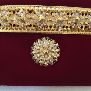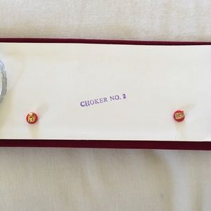 Beautiful gold tinted chocker in perfect condition with no flaws! Includes pair of earrings that match -- also gold tinted