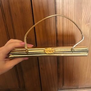 Gorgeous gold clutch with optional hand strap. Perfect for a fancy evening out!