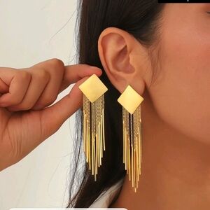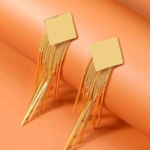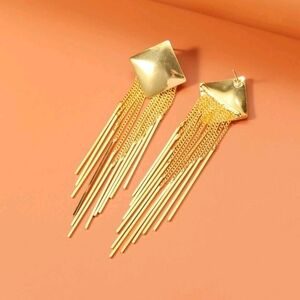 Gold color diamond Shaped Metal & Chain Tassel Drop Earrings For Women