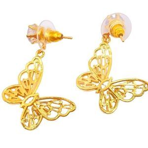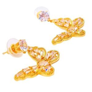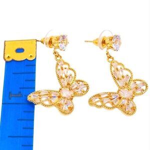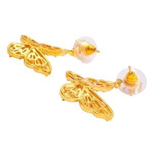Women’s female Gold tone clear crystal insect butterfly dangle post earrings, New with tags, See pictures for measurements