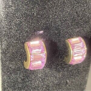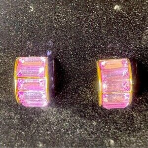 Gold cuff earrings w purple rectangle gemstone embellishment