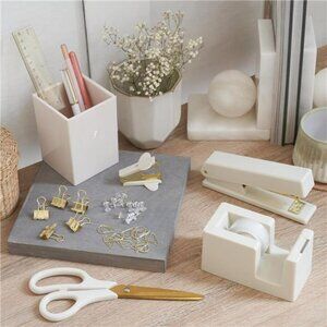 Gold desk accessories set office supplies organizer pen holder stapler tape deco