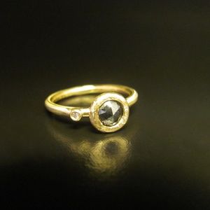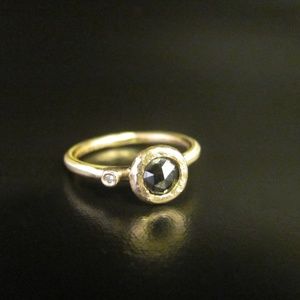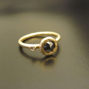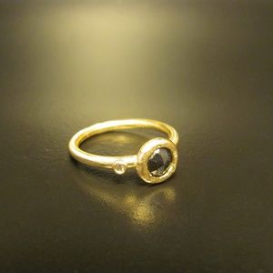 Beautiful 14 karat yellow gold ring bezel set with black & white diamonds.