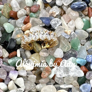 Gold diamond style chunky jewel Tone gem ring band cuff
