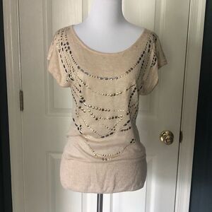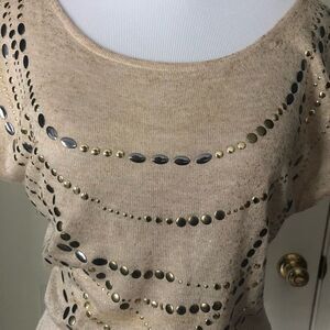 Gold embellished Cach’e short sleeve knit top