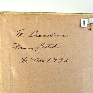 Gold framed dairy and bee print. Vintage. Back has date Christmas 1993 written.