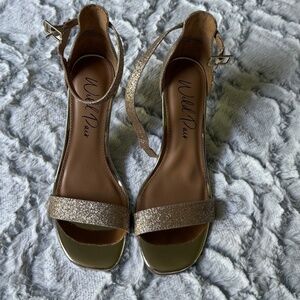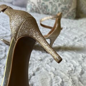 Gold glitter/metallic strappy stilettos. 3 1/2” heel. Never worn. Purchased from Macy’s. Just in time for homecoming! NWOT but in original box.