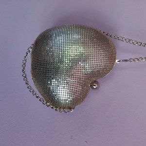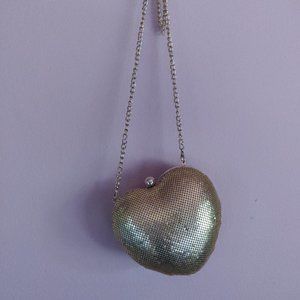 Lovely gold toned purse with metal chain detail on the outside and the thicker metal chain strap. Fits a surprising amount (probs not a cell phone), EUC