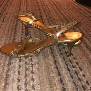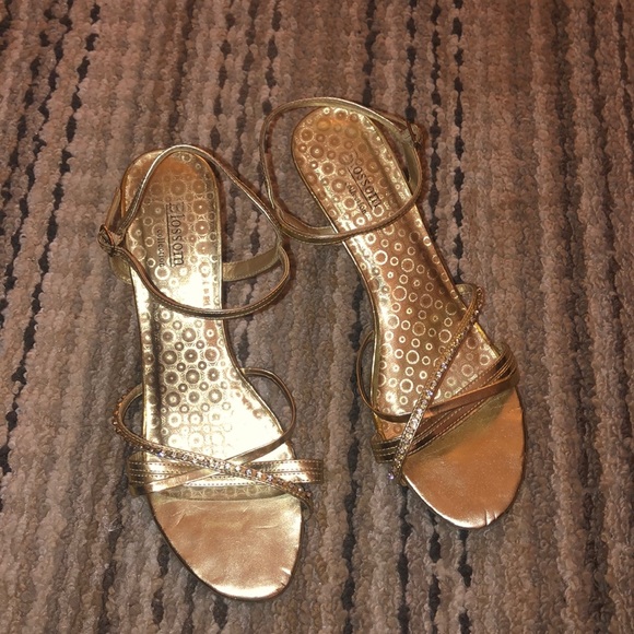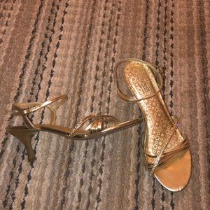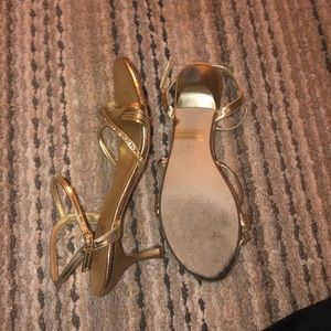 These are cute gold heels that aren’t very high with a cute little diamond toe strap