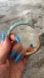 Easy on gold hinged bangle with turquoise enamel and clear gem accents. All gems intact.