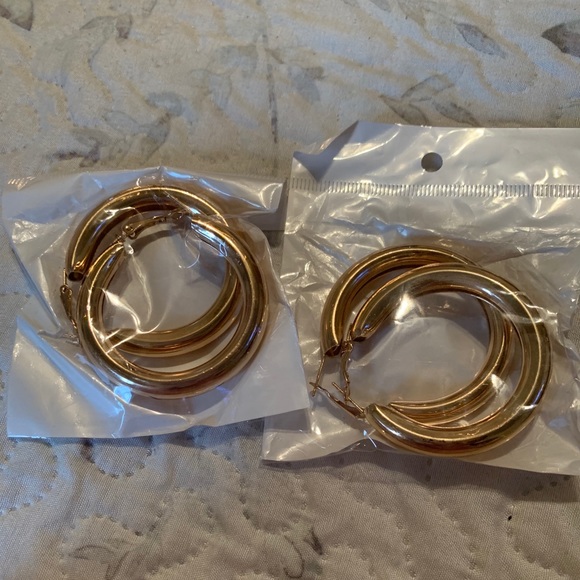 2 pair of thick golden hoops.(unworn and unopened) Original price is a combined price of both pairs.