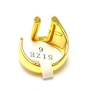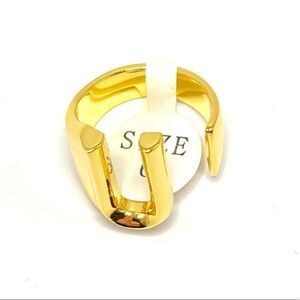 Unisex Men’s male Women’s female Gold tone stainless steel monogram personalized initial “U” cuff ring size 6, New