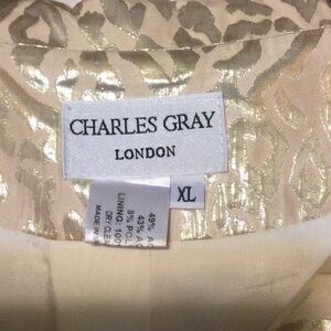 Beautiful jacket to top off dressy pants or a skirt! Gold buttons to enhance lovely gold fabric!