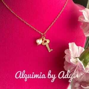 Gold key charms vintage pearl Vermeil gold 925 necklace