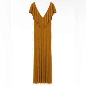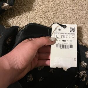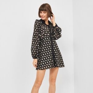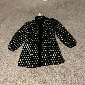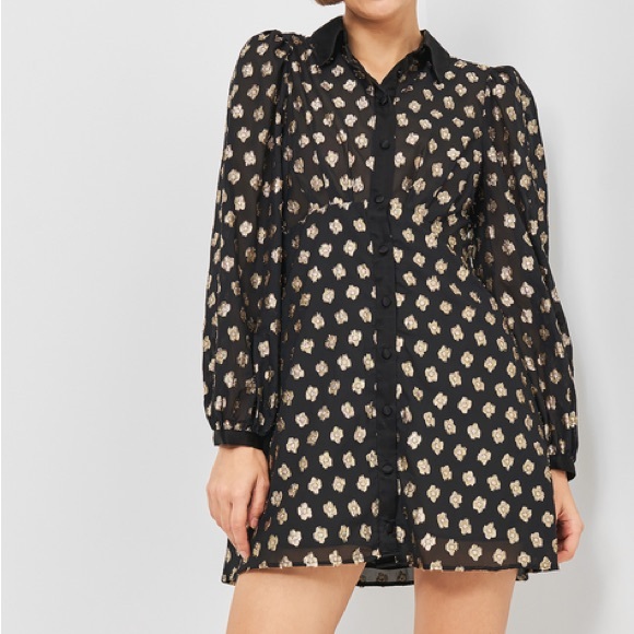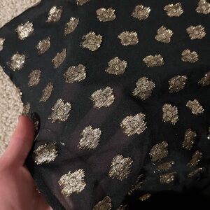 Gold metallic floral pattern thread button down black shirt dress never worn