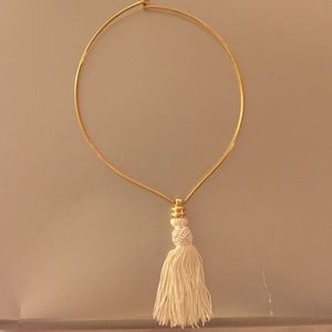 Beautiful gold neckless with while tassel! Fun neckless, perfect for any holiday party!