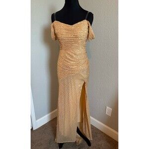 Gold off shoulder sequin Dress