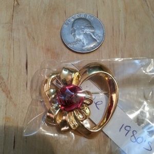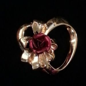 Gold open heart bow red rose brooch by Botique EVC 1.5”