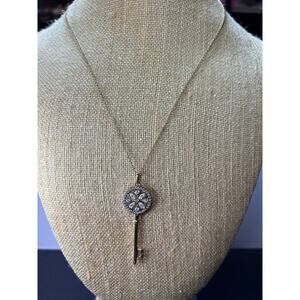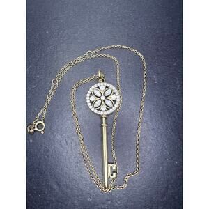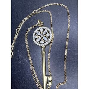 This is 14-18k yellow gold plated over sterling silver. Key pendant has white / colorless cubic zirconia stones. Chain measures 18 inches long. CZ 925 CHINA