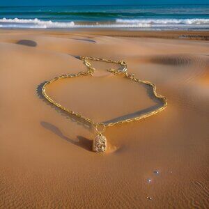 Gold paperclip link chain w pendant golden w stars~ 20 in.