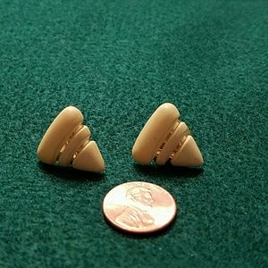 Gold plate and cream retro triangle earrings