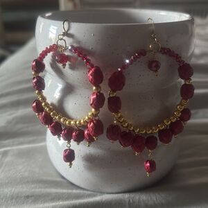 New , Elegant and gold beaded hoop earrings perfect for any occasion. Add a touch of sophistication to your outfit.