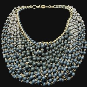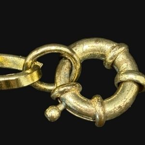 Gold plated cuban link chain with dangling graduated color jasper round beads necklace with spring ring big clasp. Length 18". Size of beads 6 mm and 8 mm. Condition excellent.
