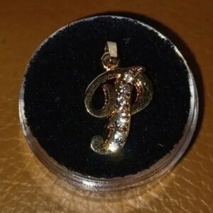 💙🌹Gold plated letter pendant "P" with faux diamonds