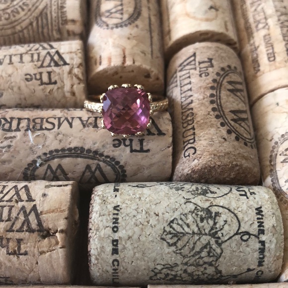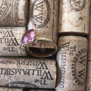 Lulu Avenue Gold ring with a deep pink/light purple stone.