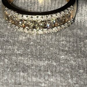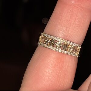 Champagne and white diamond band 10k solid real yellow gold 1 ctw size 8