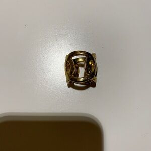 Not real gold just the color gold. Fits me and I’m usually a size 7. Does have superficial scratches