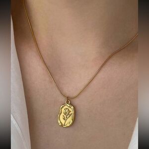 This elegant gold pendant necklace stainless steel in 18k gold plated hardware adds a touch of sophistication to any outfit. Perfect for any occasion.