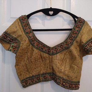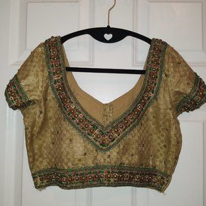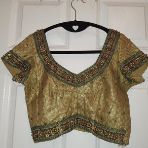 Gold saree/lehenga blouse crop top with hand embroidery and sequins