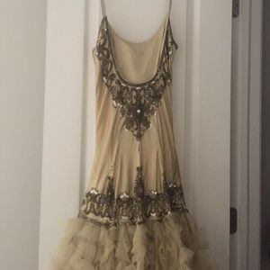 Beautiful bead work as you can see. Worn 3 times over the course of 6 years. Has a spot where bead threading has come loose as seen in photo and a small spot the size of a pea that the camera didn't capture on the front.